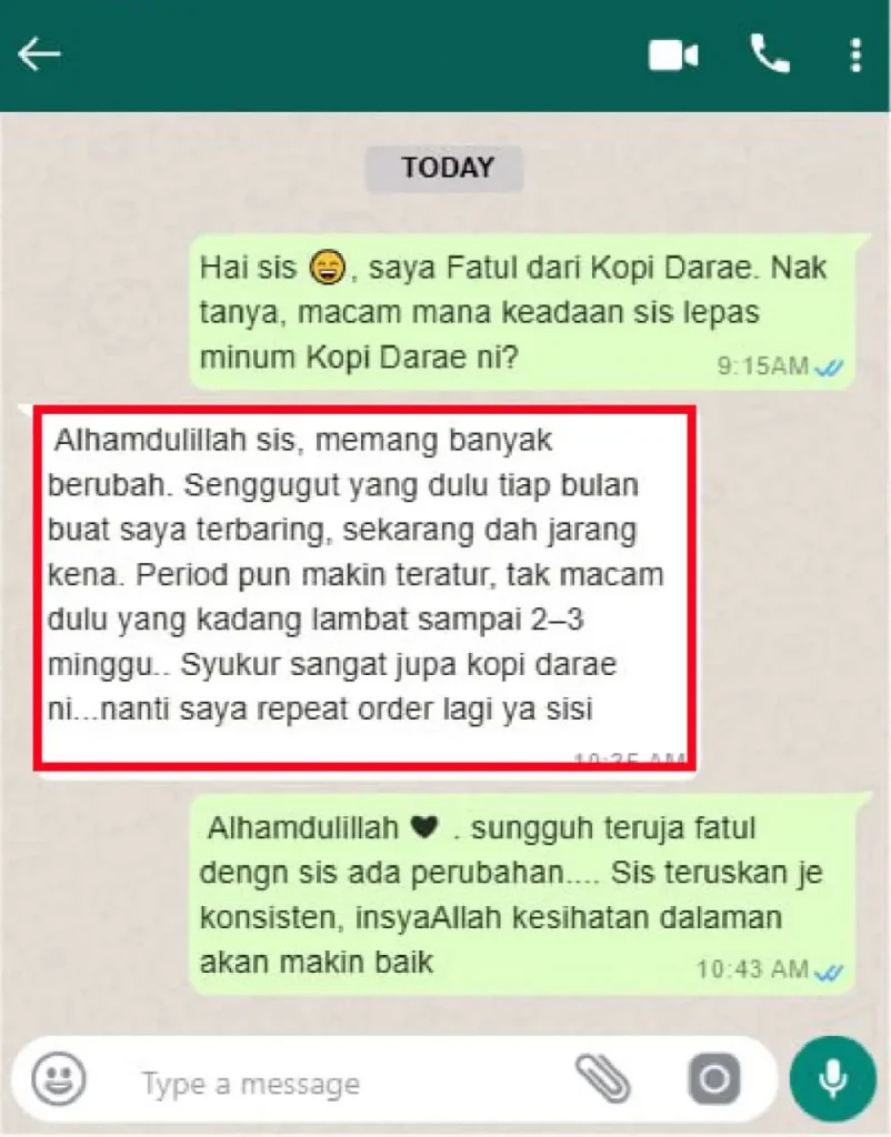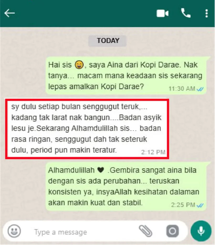 Kami yakin dengan keberkesanan Kopi Darae. Tapi kalau anda rasa tiada sebarang perubahan selepas amalkan secara konsisten, kami sedia pulangkan wang anda tanpa banyak soal.